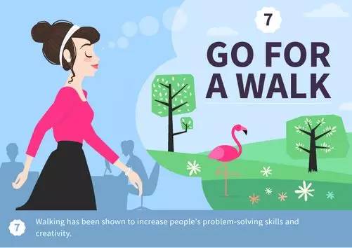 研究證明,散步有助于增強(qiáng)人們的創(chuàng)造力和解決問題的能力。