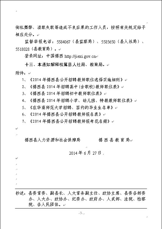 2014年揭西縣公開招聘教師的通知